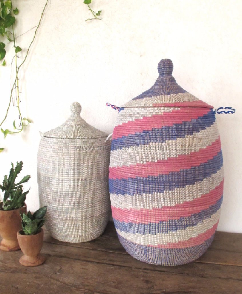 Utilizamos materiales reciclados para envolver cestas. No se ve elegante sino sólido. Es necesario porque debe estar bien protegido para un largo viaje hasta su lugar. Acepte nuestro esfuerzo por adoptar una postura ecológica.