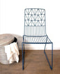 Silla al aire libre hecha a mano en azul gasolina oscuro.