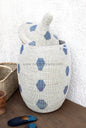 Cesto portabiancheria fatto a mano (XL) in bianco con motivo blu / Cesto portabiancheria