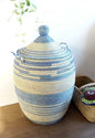 Laundry Basket with lid (XL) in ivory & blue / African Wicker Hamper with lid from Senegal