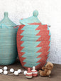 Senegalese Handmade Laundry Basket (XL) in turquoise & red / Eco Friendly Laundry Hamper